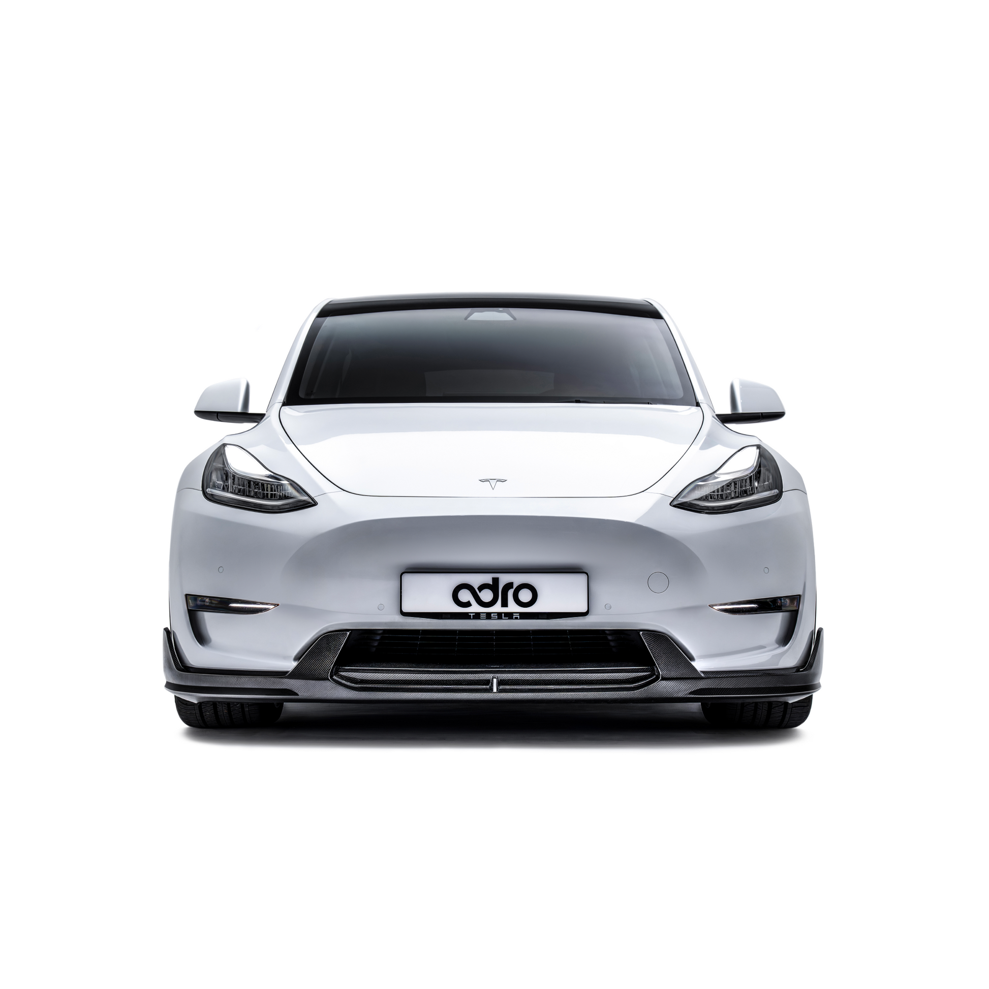 The ADRO front splitter V2 for the Tesla Model Y is crafted from 100% real carbon fiber, designed to perfectly complement the entire carbon fiber body kit. When installed alone, it adds a more angular design to the front of your Model Y while reducing drag and enhancing aerodynamic efficiency to maximize your Model Y's performance. Made from real carbon fiber, it's lightweight, strong, and capable of withstanding any track day, road trip, or work commute you can throw at it.
